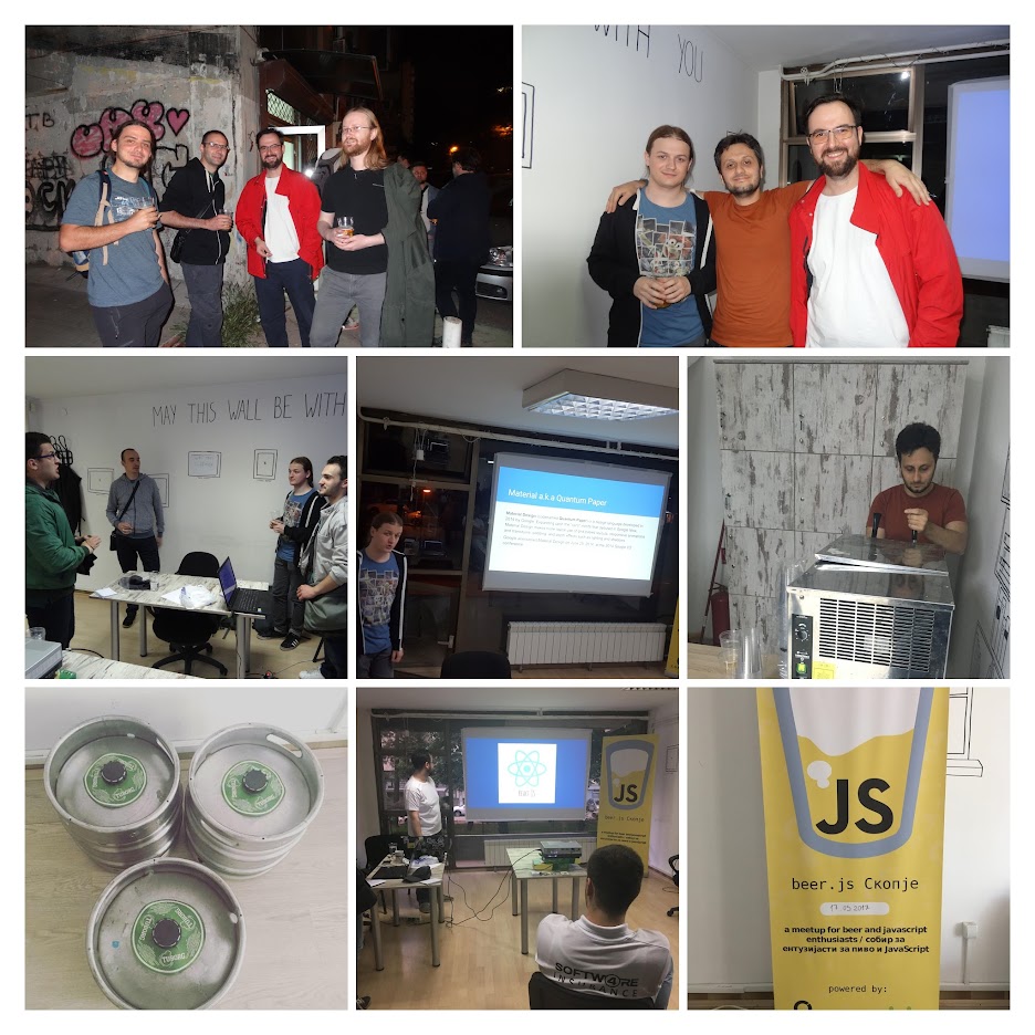 Fact is, weāre probably still around because we like doing this. Youāll have to find your own motivator, but being persistent no matter how frustrating it gets (and frustrating it does get), to me, is key to having a meetup that is considered to be successful. So, just try having fun and if you need any kind of motivation to start your own meetup (BeerJS or otherwise), consider this post a sign to Just Do Itā¢. If you need any sort of advice or support we can provide, feel free to contact me at hello@darko.io or our BeerJS branch at hello@beerjs.mk.